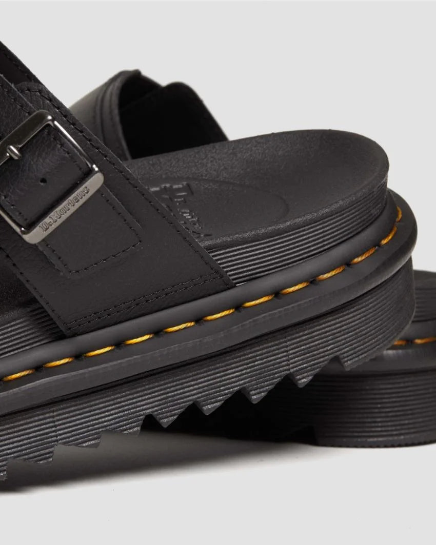 The Dr. Martens Myles Slide Sandal Black Athena is built for those who want comfort without compromising on style. Featuring sleek Black Athena leather and two adjustable straps, this sandal offers a laid-back fit with the classic Docs attitude. A cushioned SoftWair™ footbed and lightweight EVA midsole keep things comfortable, while the Goodyear-welted sole and signature yellow stitching seal the deal.