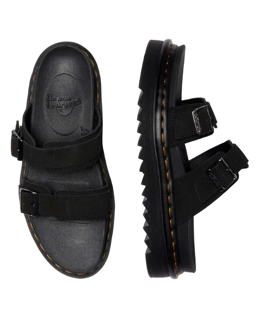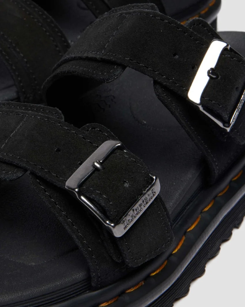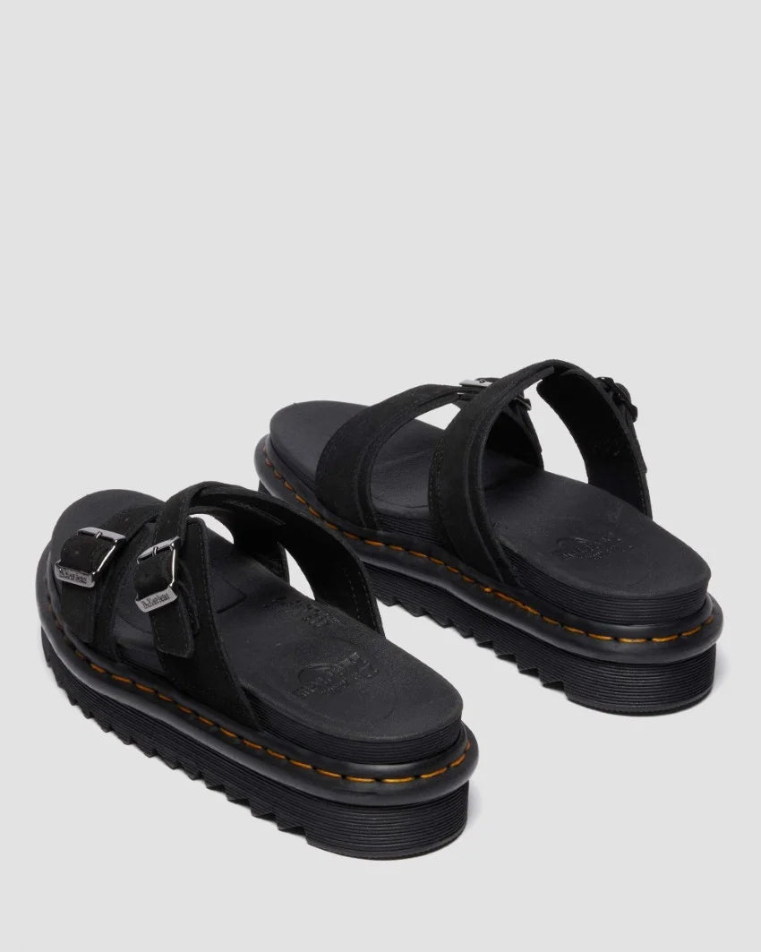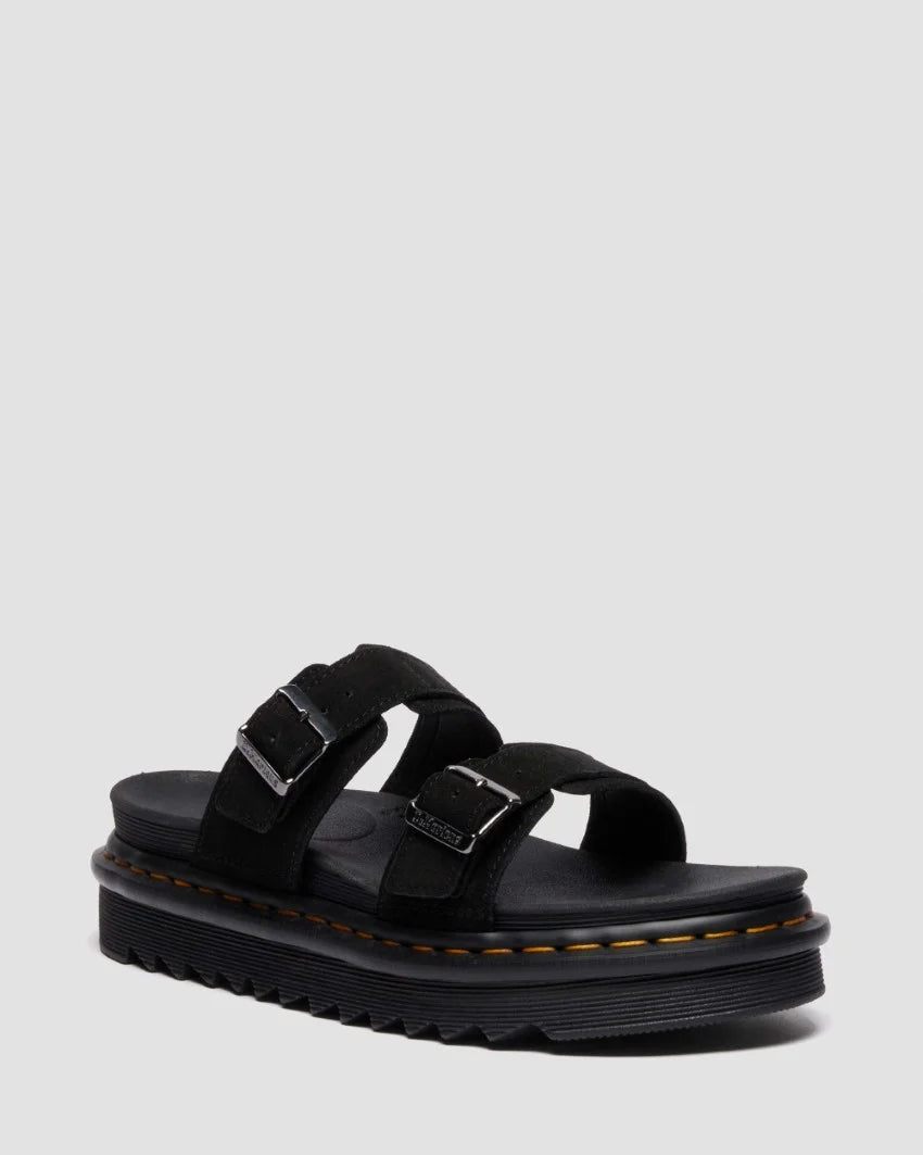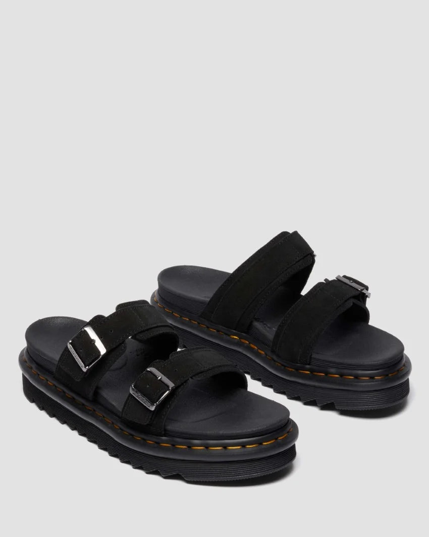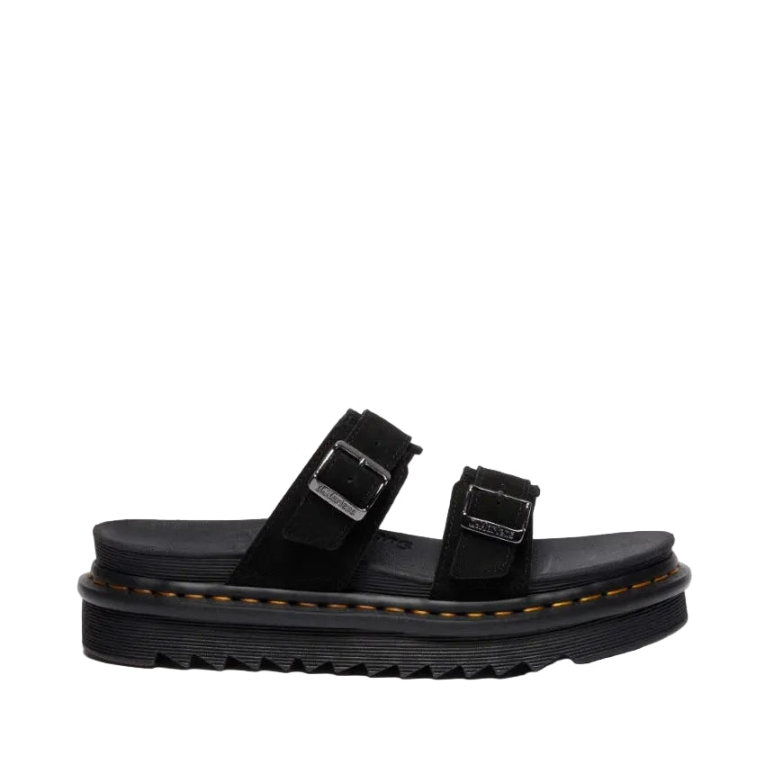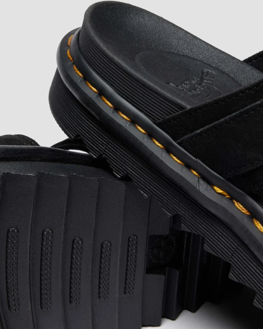 The Dr. Martens Myles Long Napped Suede is a rugged yet refined slide sandal built for all-day wear and iconic Docs style. Featuring soft long napped suede straps with adjustable buckles, this silhouette sits on a cushioned EVA midsole with Dr. Martens’ signature Goodyear-welted outsole. It's a comfortable, statement-making option for laid-back days with attitude.