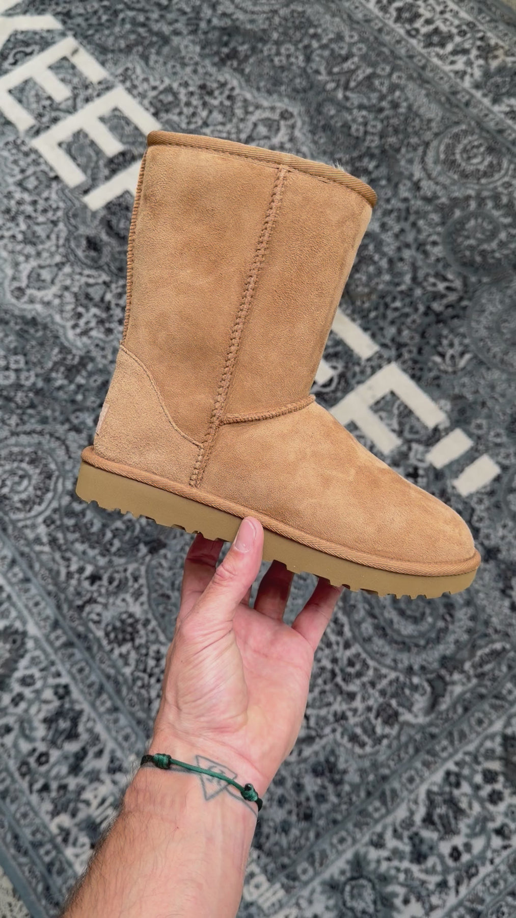 The UGG Classic Short II Chestnut Women's is a timeless silhouette that embodies warmth, comfort, and effortless style. Featuring the iconic chestnut suede upper, this mid-calf boot is pre-treated to resist water and stains. Inside, plush UGGplush™ lining delivers unmatched softness, while the Treadlite by UGG™ outsole offers lightweight grip and flexibility—perfect for daily wear.