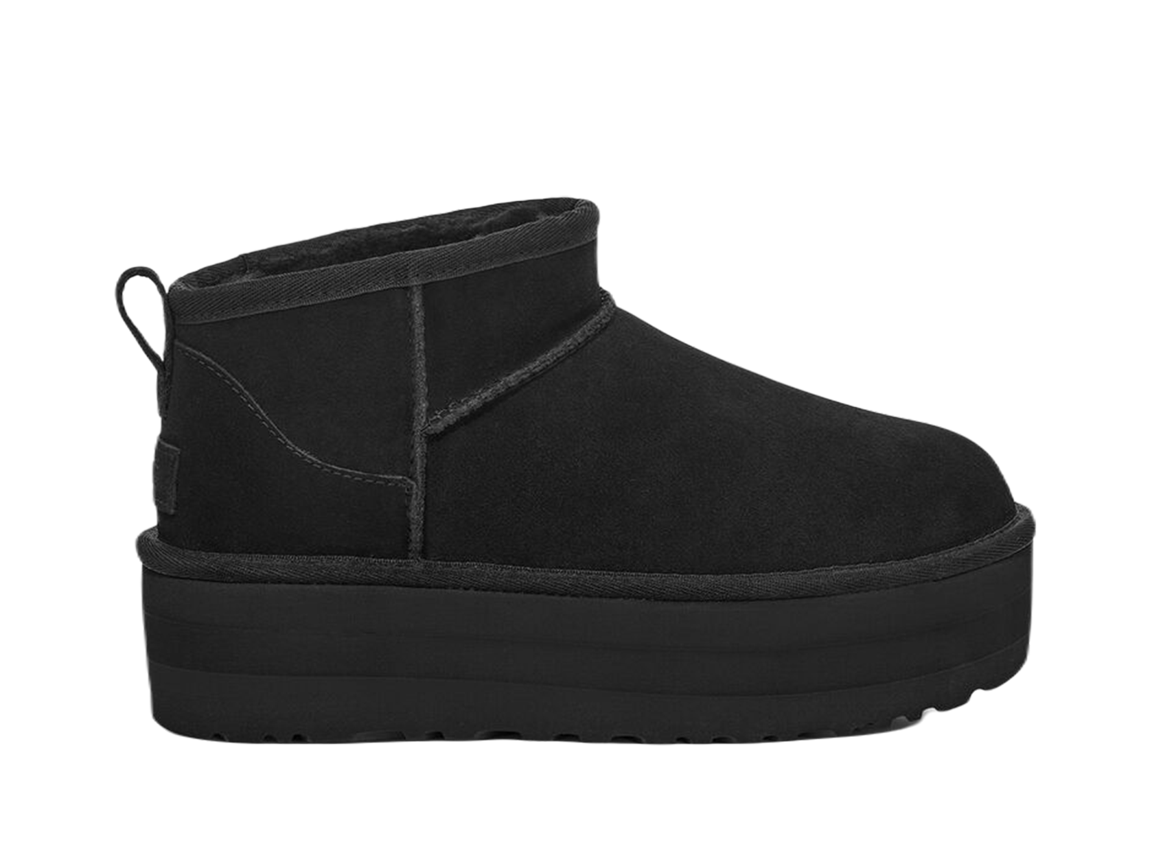 The UGG Classic Ultra Mini Platform Boot Black Women’s takes the iconic silhouette to new heights—literally. Featuring a 5cm platform sole, this elevated version of the Ultra Mini delivers a bold, fashion-forward update while retaining all the cosy comfort UGG is known for. Wrapped in premium black suede, pre-treated for water and stain resistance, and lined with ultra-soft UGGplush™, it's the ultimate mix of statement and substance.